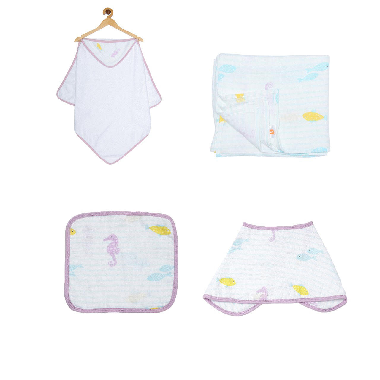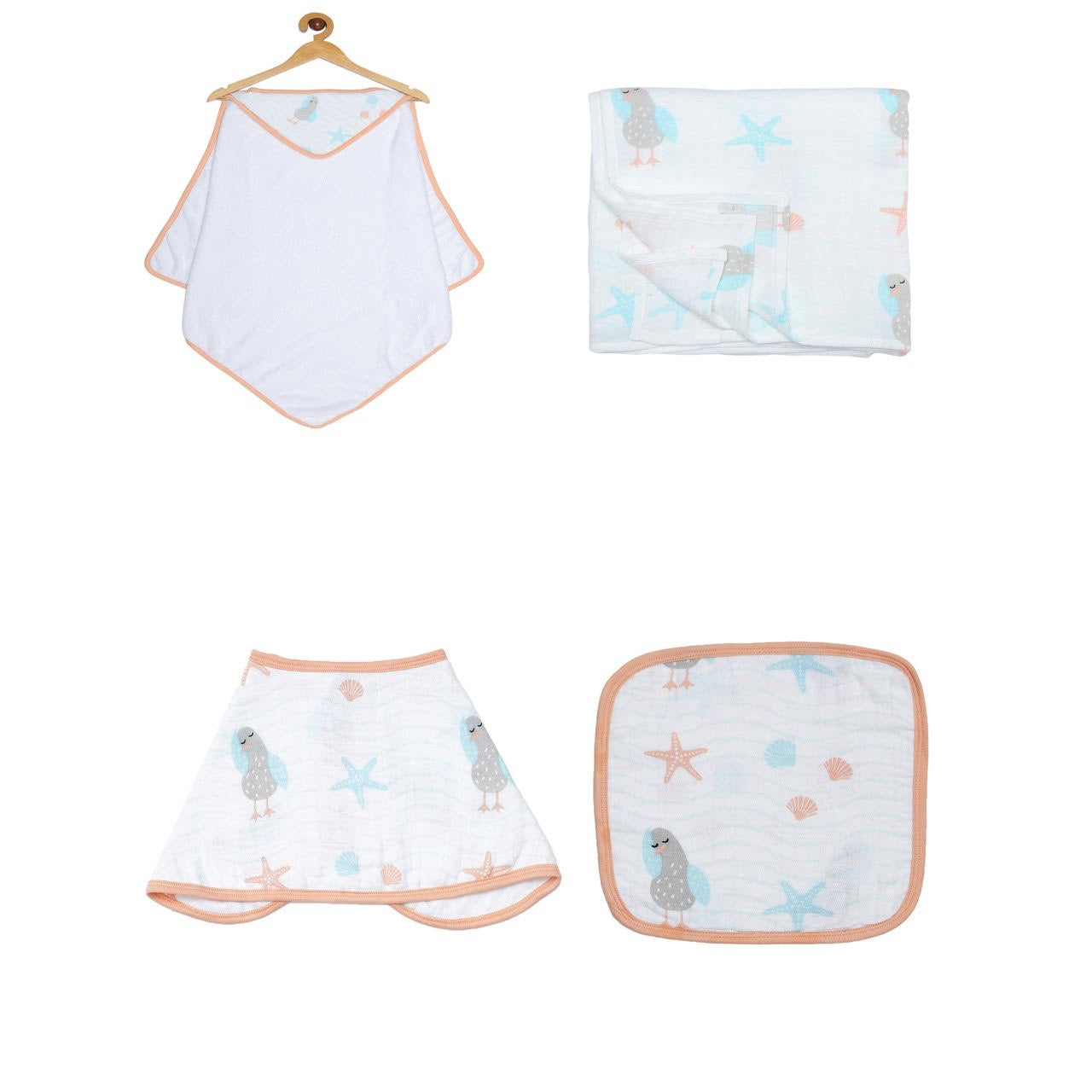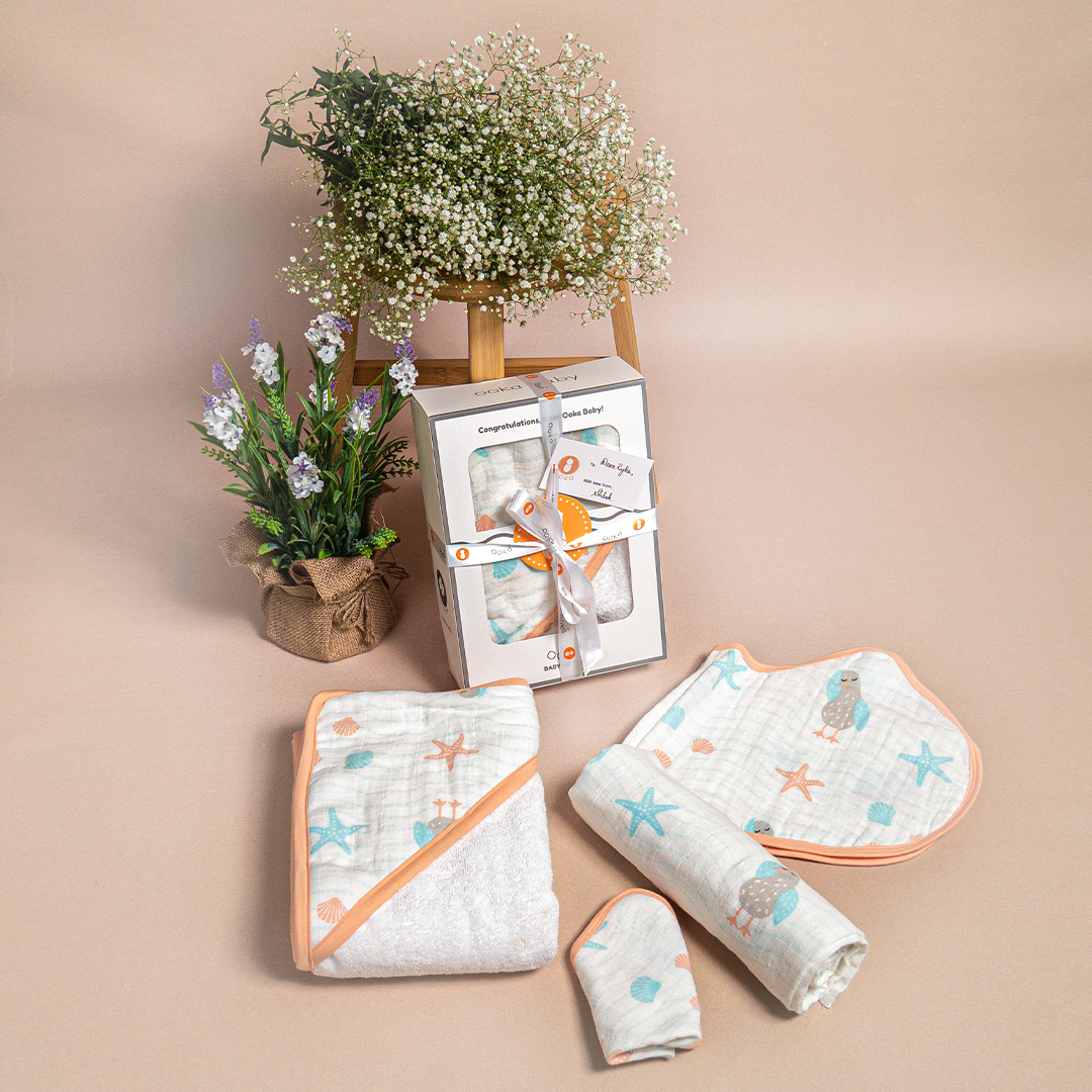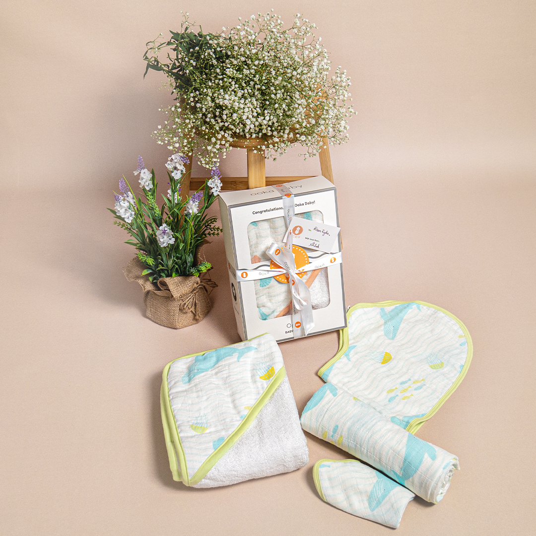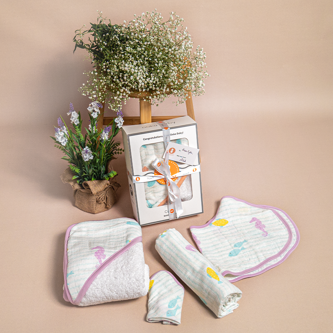 Ooka brings you a premium range of 100% cotton muslin baby essentials in a delightful collection 'An Ocean's Lullaby' in a set of 3 soothing prints.